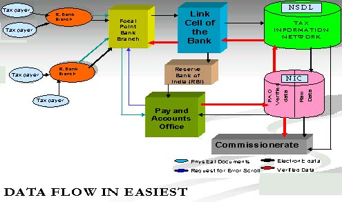 In August 2004, a HPC was set up in the RBI for "setting up facilities for on-line transmission of Tax Payment Data from Banks to Central Excise Dept. under the Chairmanship of Shri J. N. Nigam (Member) CBEC. The terms of reference of the Committee included recommending: modalities for dematerialization of Challans, setting up and implementing a fully automated safe and secure system of receipt and transmission of information relating to tax payments, new business processes for operationalising the scheme, overall policy frame work for the industry etc. Members included Director General (Systems), CBEC, Principle Chief Controller of Accounts (CBEC), Controller General of Accounts, representatives from Corporate Sector, RBI and IBA.